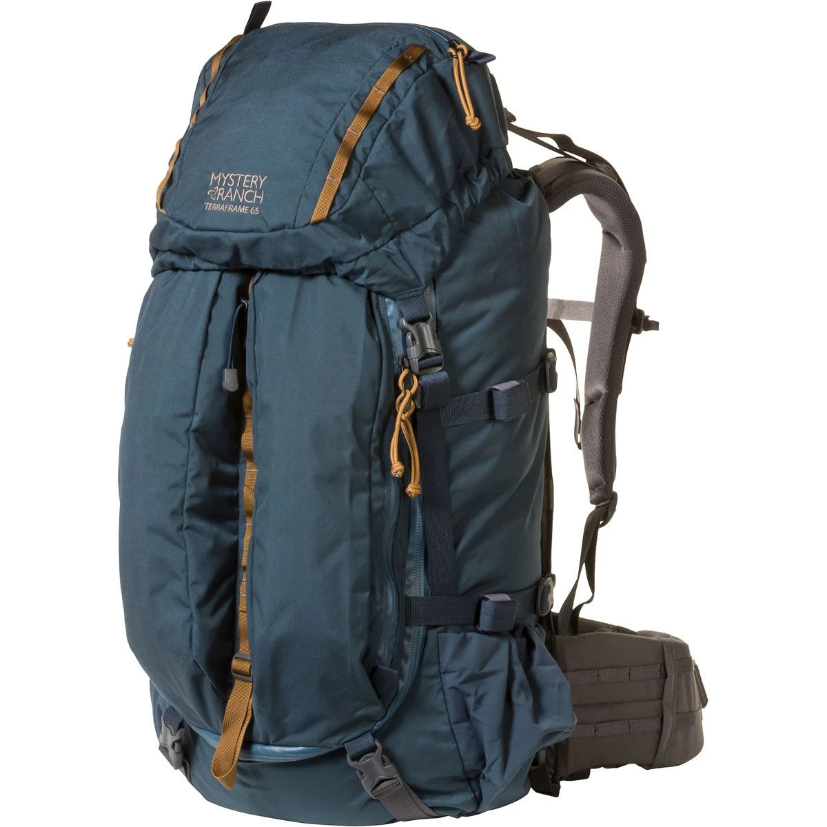 An expandable load hauler for your biggest mountain adventures, the Mystery Ranch Terraframe 65 Pack is for mountain zealots who need options when going big. Mystery Ranch has offered the OVERLOAD® feature in hunting and military packs for years, yet backcountry climbers, fisherman, guides and others have been asking for a mountain-inspired version of this versatile, load-taming design. Featuring rigid carbon fiber frame stays, the suspension allows an ideal amount of torsional flex while providing ample support for loads up to 150 lbs.